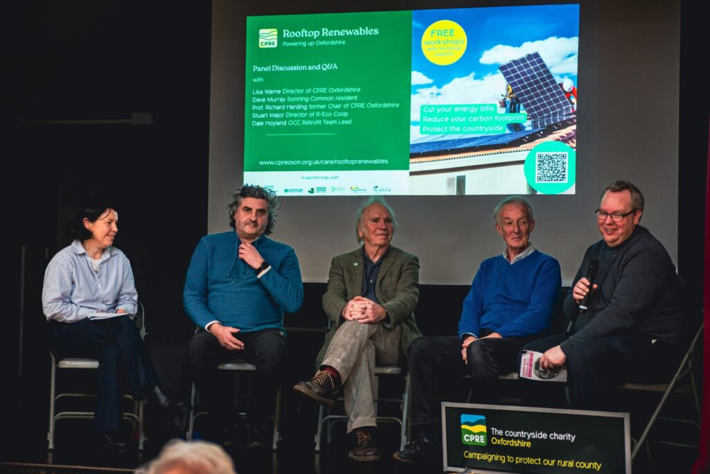 Panellists highlighted that solar power offers practical and financial benefits as well as environmental ones. Richard Harding, former Chair of CPRE Oxfordshire and a long-term solar user, described how his solar panels and battery storage have helped keep his home powered during local outages. Having first installed panels in 2005, he said early adoption had proved to be “a fantastic long-term investment”, while stressing the importance of keeping up to date with changing tariffs and subsidies.